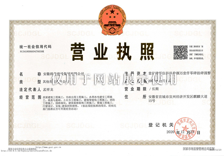 安徽祥龍建設集團有限公司成立于2005年,企業注冊資本金1.46億元,現擁有建筑工程施工總承包、市政公用工程施工總承包、建筑裝修裝飾工程專業承包、鋼結構工程專業承包(全資子公司安徽祥龍鋼結構有限公司)等四項國家壹級資質。2020年12月公司正式完成股權并購重組,改制為國有控股企業。