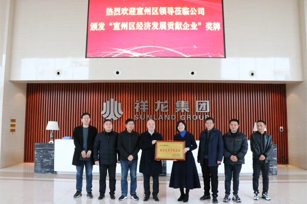 2023年2月17日上午,宣州區(qū)財政局局長張玲蒞臨我司頒發(fā)“宣州區(qū)經(jīng)濟發(fā)展貢獻企業(yè)”獎牌。宣城高新區(qū)管委會黨工委副書記胡偉仕、宣城高新投資發(fā)展有限公司董事長何啟發(fā)等領導陪同。公司總經(jīng)理孟祥龍向張玲介紹了公司重組以來的經(jīng)營、生產(chǎn)情況,張玲肯定了祥龍公司所取得的成績,鼓勵公司未來為社會創(chuàng)造更多更大的貢獻。