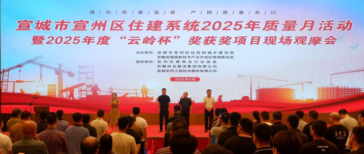 2025年9月26日,由宣城市宣州區住房和城鄉建設局、安徽宣城高新技術產業開發區管理委員會聯合主辦的“宣州區住建系統2025年質量月活動暨2025年度‘云嶺杯’獎獲獎項目現場觀摩會”在宣城高新技術產業開發區科技創新中心一期項目圓滿落幕。活動旨在以“質量月”為契機,通過“標桿引領、經驗共享”模式,推動全區建筑業質量管控水平整體提升,助力“品質好房子 匠心安徽造”品牌建設。